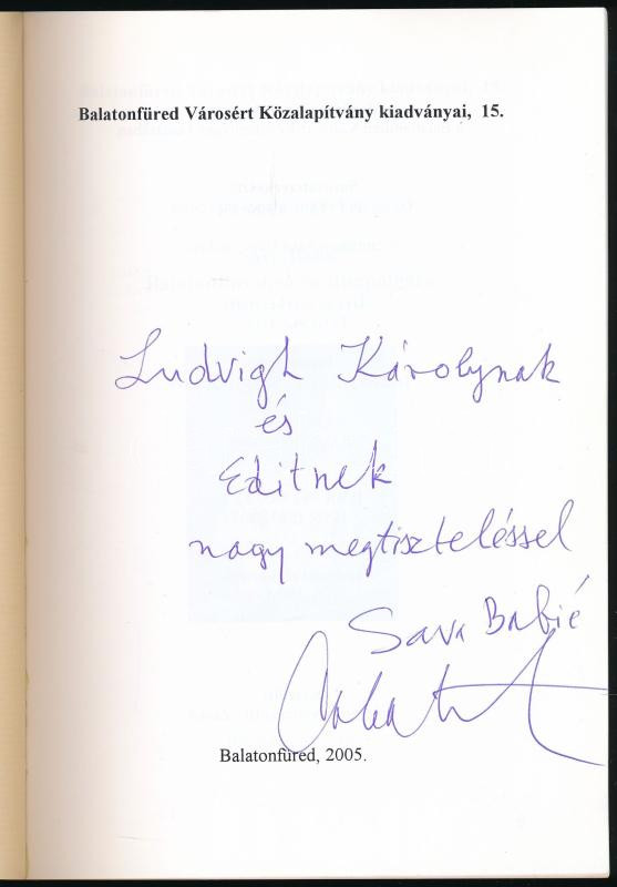 Description: Fenyvesi Ottó: Sava Babic Balatonfüred város díszpolgára. Sava Babić (1934-2012) szerb író, költő, műfordító által és egy azonosítatlan személy által DEDIKÁLT példány! Balatonfüred Városért Közalapítvány 15. Balatonfüred, 2005, Balatonfüred Városért Közalapítvány, 96+4 p.
