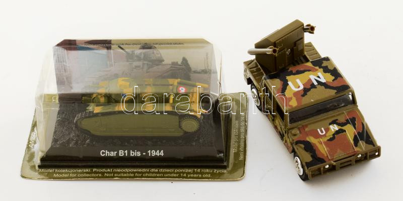 2 darab katonai játékautó, Hummer rakétavető és Char B1 bis tank bontatlan csomagolásban.