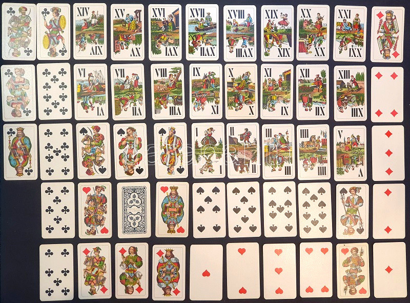 Tökéletes állapotú lapok, egy híján teljes kártyacsomag.