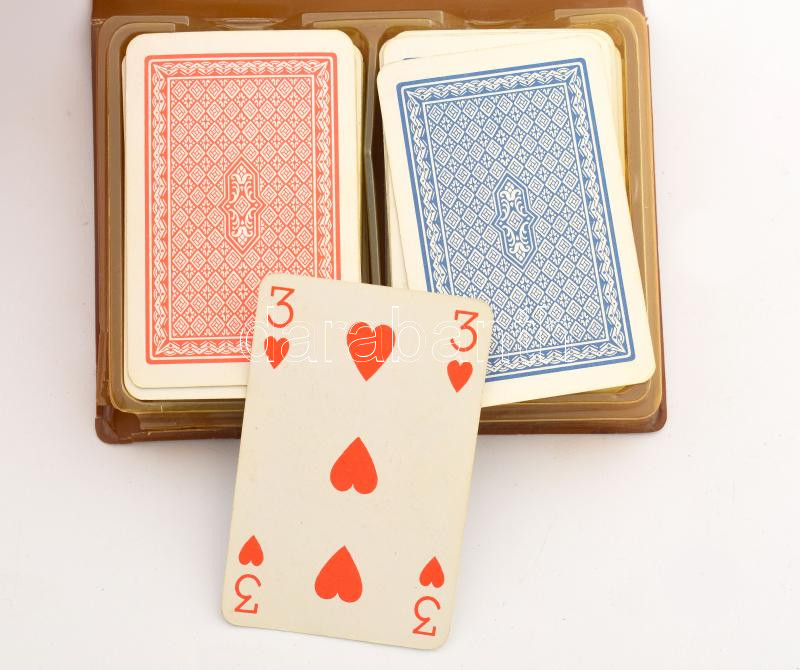 Römikártya, francia kártya, 2 pakli, sérült tokban