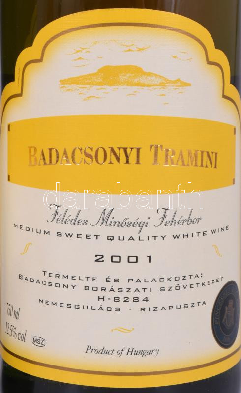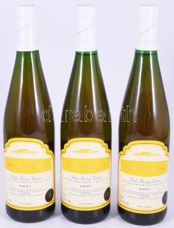 2001 Badacsonyi Tramini, Badacsony Borászati Szövetkezet, Nemesgulács-Rizapuszta, 3 db bontatlan palack száraz fehérbor, pincében, szakszerűen tárolt, 12,5%, 0,75 l x3