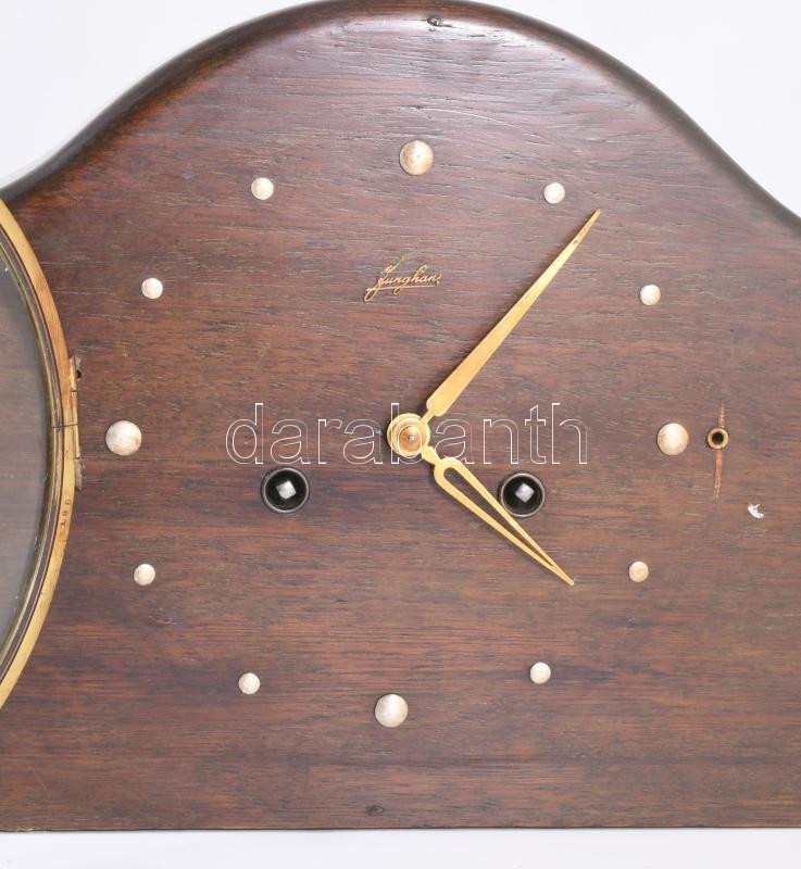 Junghans kandallóóra. Kis sérüléssel, kulccsal, működik, számlapüveg tartója laza, 50x22 cm