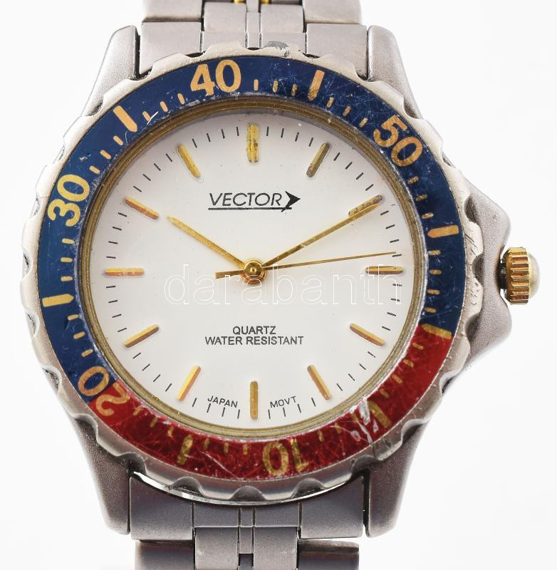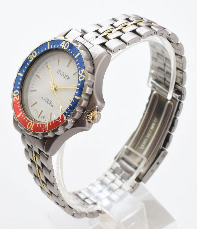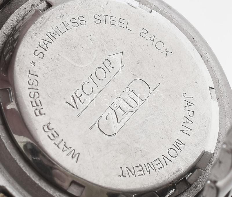 Vector kvarc férfi karóra, fém szíjjal elemmel, forgatható lünettával, eredeti csattal, kis karccal a lünettán, elemmel, működő jó állapotban 34 mm