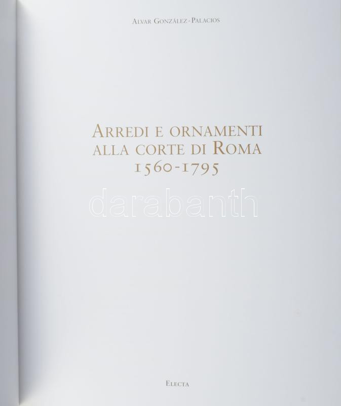 Alvar González-Palacios: Arredi e ornamenti alla corte di Roma. Electa, 2004. 448. Kiadói egészvászon kötésben, papír védőborítóval, kiadói karton tékában. Szép állapotban.