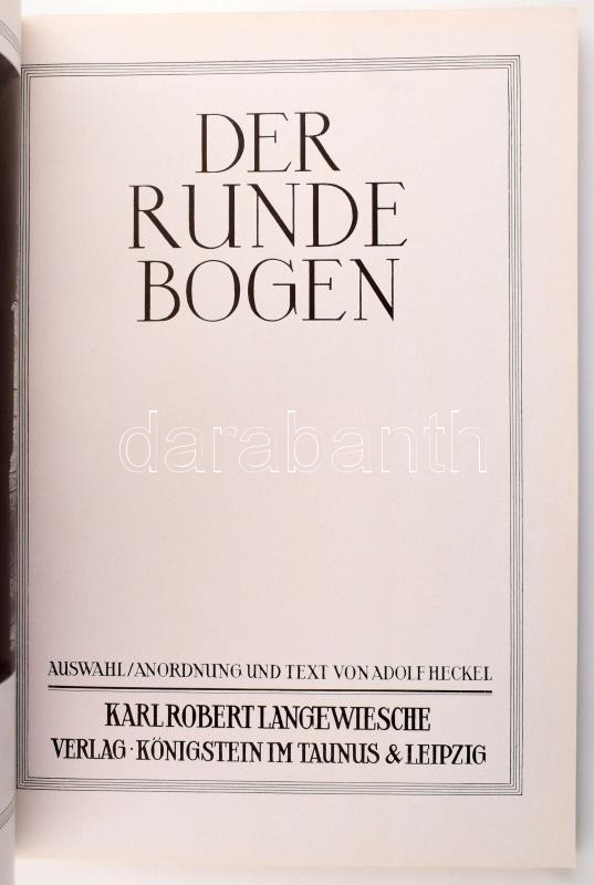 Description: Adolf Heckel: Der runde Bogen. Auswahl/Anordnung und Text von - -. Die Blauen Bücher. Königstein im Taunus,1940,Karl Robert Langewiesche. Német nyelven. Gazdag képanyaggal illusztrált. Kiadói papírkötés.