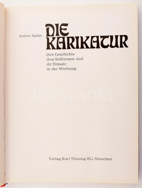 Anton Sailer: Die Karikatur ihre Geschichte, ihre Stilformen und ihr E... https://www.darabanth.com/en/514-Auction-philately-postcards-numismatics-artwork-books-colletibles-jewelry/515.0/Books/Books-Architecture-Art~619/Anton-Sailer-Die-Karikatur-ihre-Geschichte-ihre-Stilformen-und-ihr-Einsatz-in-der-Werbung-Munche~II3405276