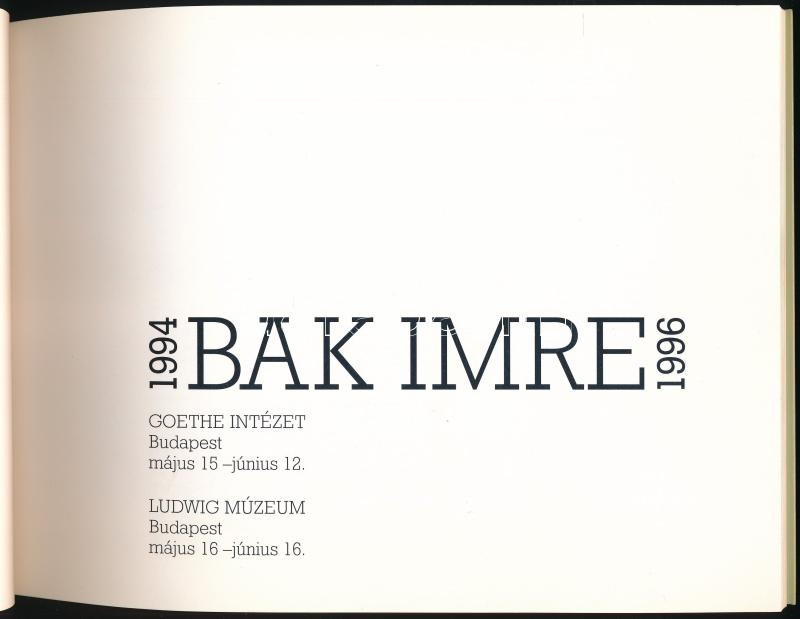 Bak Imre 1994-1996. Budapest, Goethe Intézet, Ludwig Múzeum. Kiadói pa...