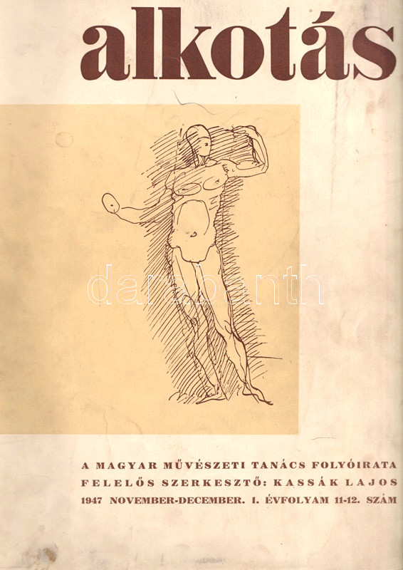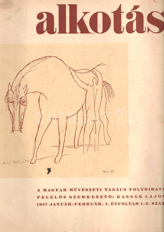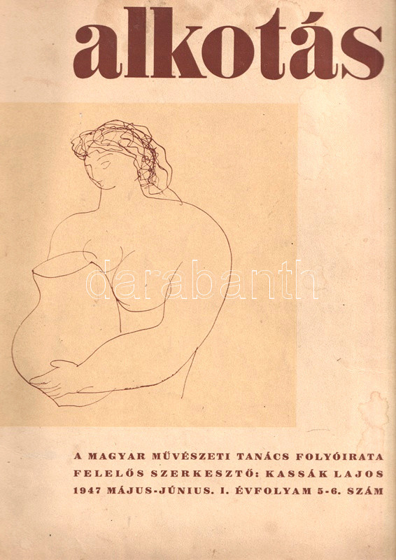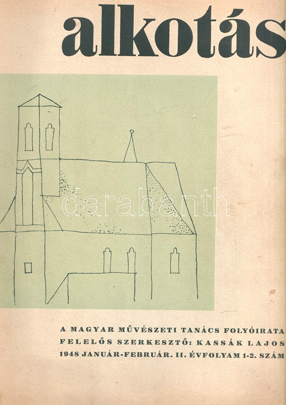 [Folyóirat] Alkotás. A Magyar Művészeti Tanács folyóirata. Megjelenik havonta egyszer. Felelős szerkesztő: Kassák Lajos. I. évfolyam, 1-12. szám, II. évfolyam, 1-4. szám. (1947. január - 1948. április) [Teljes, a folyóiratnak összesen ez a tizenhat száma jelent meg.]