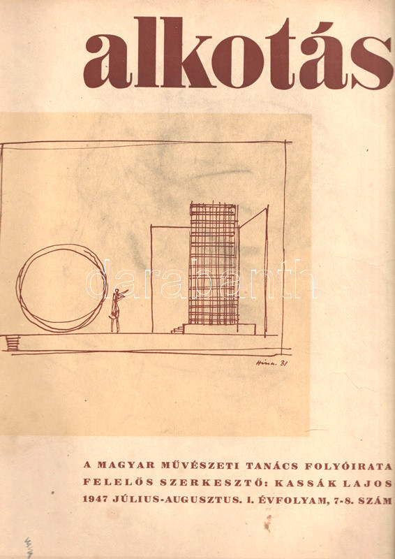 Kassák Lajos főszerkesztésével 1947-1948 során tizenhat számot ért meg a koalíciós idők legnívósabb művészeti folyóirata, az Alkotás. A korábbi évtizedekben is már számos lapot alapító, öntörvényű, autonóm alkotó, Kassák Lajos modernista építészeket, festőket, írókat vett maga mellé. Gazdagon illusztrált művészeti folyóiratában művészeti írások, képző- és színművészeti, építészeti és urbanisztikai esszék váltakoztak az irodalmi anyaggal.