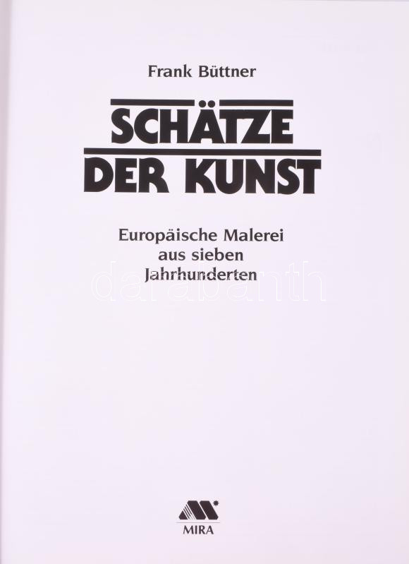 Description: Frank Büttner: Schätze der Kunst. Europäische Malerei aus sieben Jahrhunderten. Künzelsau, 1988, MIRA Verlag. Gazdag képanyaggal illusztrálva. Német nyelven. Kiadói kartonált papírkötés.