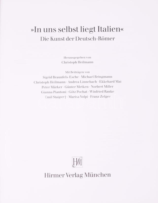 Description: "In uns selbst liegt Italien". Die Kunst der Deutsch-Römer. Szerk.: Christoph Heilmann. München, 1987, Hirmer Verlag. Fekete-fehér és színes képekkel illusztrálva. Német nyelven. Kiadói papírkötés.