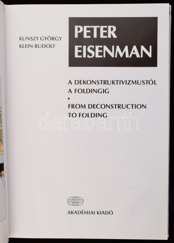 Kunszt György - Klein Rudolf: Peter Eisenmann. A dekonstruktivizmustól... https://www.darabanth.com/en/514-Auction-philately-postcards-numismatics-artwork-books-colletibles-jewelry/515.0/Books/Books-Architecture-Art~619/Kunszt-Gyorgy-Klein-Rudolf-Peter-Eisenmann-A-dekonstruktivizmustol-a-foldingig-Bp-1999-Aka~II3410327