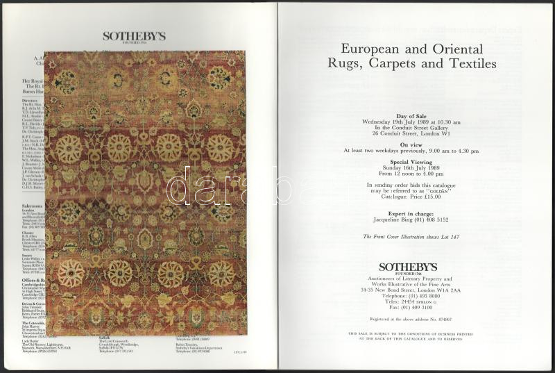 Sotheby's European and Oriental Rugs, Carpts and Textiles. London...
