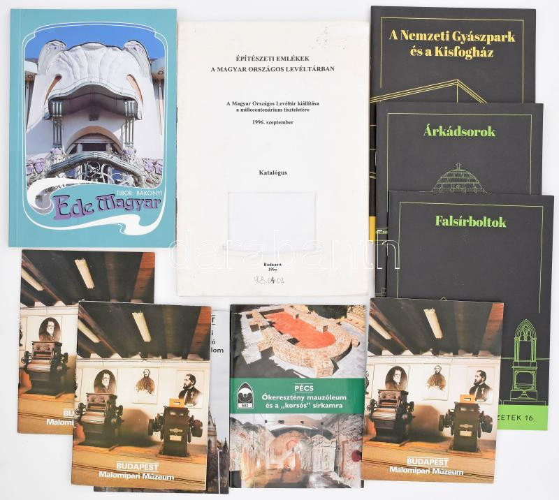 Építészeti emlékek a Magyar Országos Levéltárban. A Magíyar Országos Levéltár kiállítása a millecentenárium tiszteletére. 1996. szeptember. Katalógus. A borítón kivágással.;