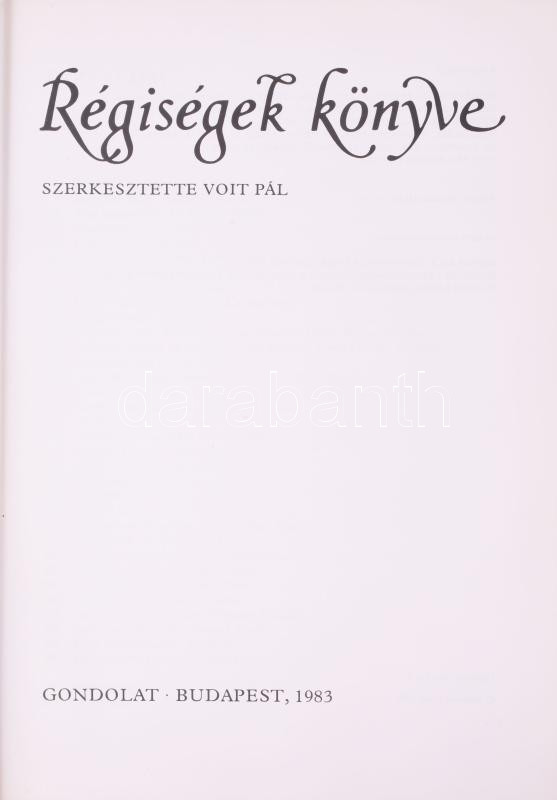 Voit Pál (szerk.): Régiségek könyve. Bp., 1983, Gondolat, 513+(3) p.+ ...