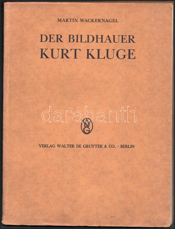 Wackernagel, Martin: Der Bildhauer Kurt Kluge. Berlin-Leipzig, 1930, Walter de Gruyter & Co., 9+(3) p.+ 34 (fekete-fehér képek) t. Német nyelven. Kiadói papÃrkötés, 1942-es ajándékozási bejegyzéssel.