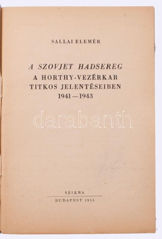6 db könyv - A szovjet hadsereg a Horthy-vezérkar titkos jelentéseiben... https://www.darabanth.com/en/514-Auction-philately-postcards-numismatics-artwork-books-colletibles-jewelry/515.0/Books/Books-History~617/6-db-konyv-A-szovjet-hadsereg-a-Horthy-vezerkar-titkos-jelenteseiben-1941-1943-Bp-1955-Szik~II3459387