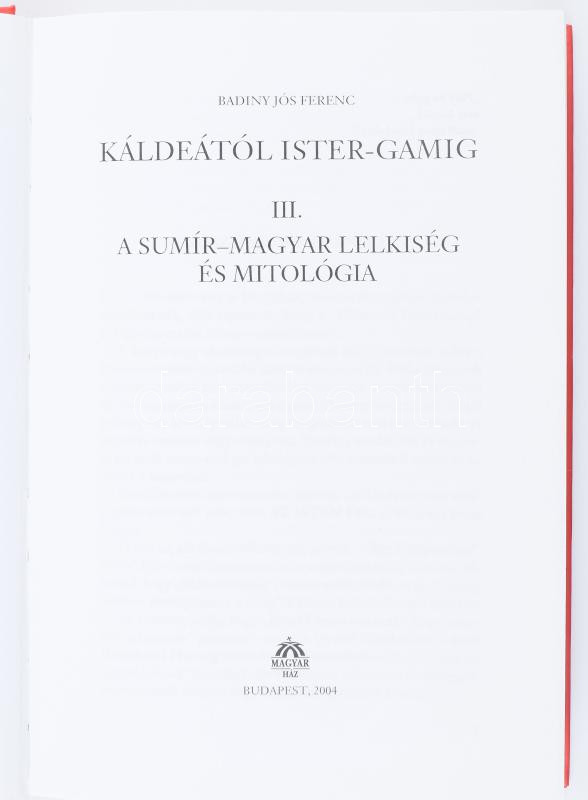 https://www.darabanth.com/en/514-Auction-philately-postcards-numismatics-artwork-books-colletibles-jewelry/515.0/Books/Books-History~617/Badiny-Jos-Ferenc-Kaldeatol-Ister-gamig-I-kotet-A-sumer-ostortenet-Bp-2004-Magyar-Haz~II3420157