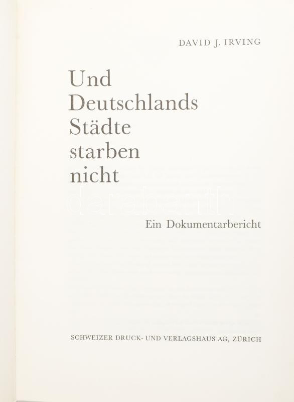 David J. Irving: Und Deutschlands Städte starben nicht. Ein Dokumentar... https://www.darabanth.com/en/514-Auction-philately-postcards-numismatics-artwork-books-colletibles-jewelry/515.0/Books/Books-History~617/David-J-Irving-Und-Deutschlands-Stadte-starben-nicht-Ein-Dokumentarbericht-Zurich-1963-Schwe~II3464173