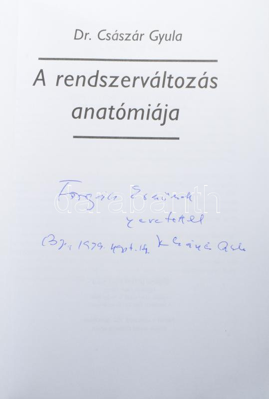 Dr. Császár Gyula: A rendszerváltozás anatómiája (1989-1998). DEDIKÁLT... https://www.darabanth.com/en/514-Auction-philately-postcards-numismatics-artwork-books-colletibles-jewelry/515.0/Books/Books-History~617/Dr-Csaszar-Gyula-A-rendszervaltozas-anatomiaja-1989-1998-DEDIKALT-1999-Littera-Nova-plus~II3476953