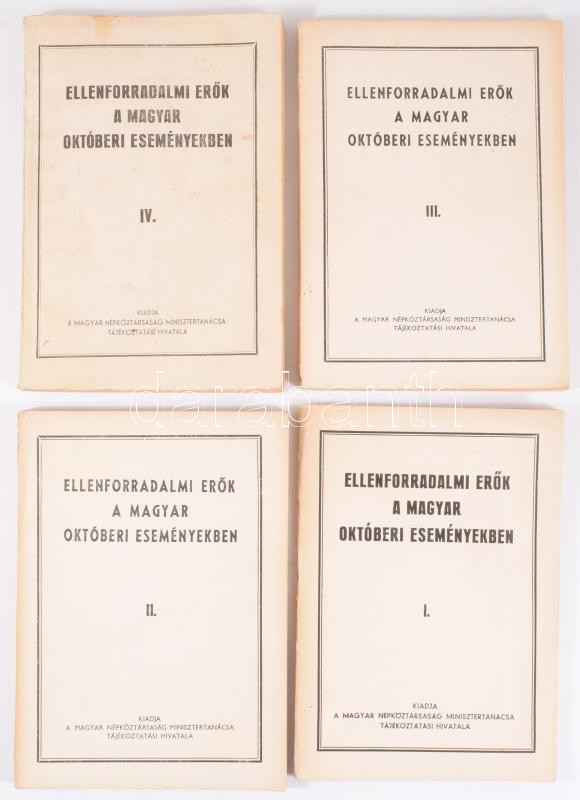 Ellenforradalmi erők a magyar októberi eseményekben. I-IV. köt. Bp., [... https://www.darabanth.com/en/514-Auction-philately-postcards-numismatics-artwork-books-colletibles-jewelry/515.0/Books/Books-History~617/Ellenforradalmi-erok-a-magyar-oktoberi-esemenyekben-I-IV-kot-Bp-1957-Magyar-Nepkoztar~II3482228