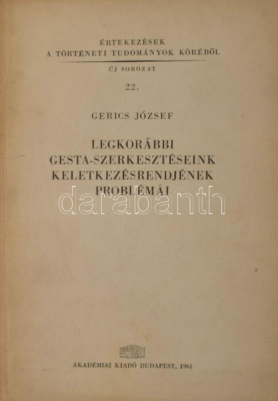 Gerics József: Legkorábbi gesta-szerkesztéseink keletkezésrendjének pr... https://www.darabanth.com/en/514-Auction-philately-postcards-numismatics-artwork-books-colletibles-jewelry/515.0/Books/Books-History~617/Gerics-Jozsef-Legkorabbi-gesta-szerkeszteseink-keletkezesrendjenek-problemai-Ertekezesek-~II3439684