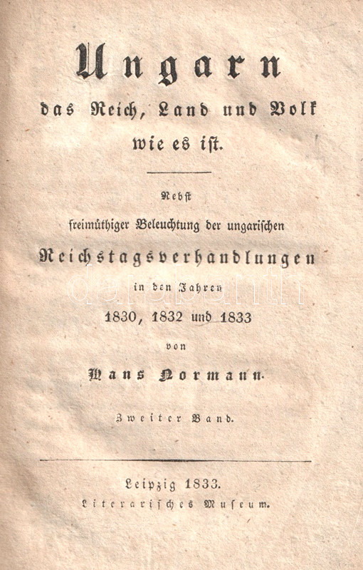 [Lipcse] Leipzig, 1833. Litterarisches Museum. [4] + 199 + [5] p. + 1 t. (kihajtható). Egyetlen német kiadás.