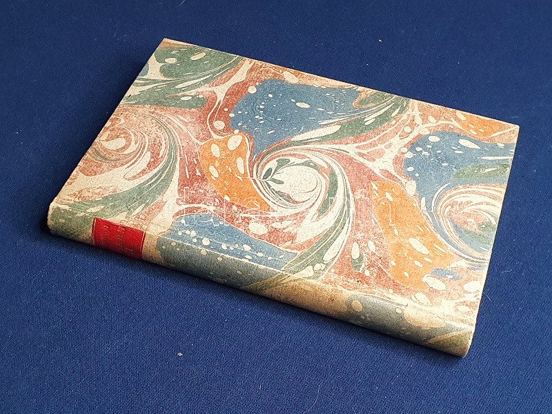 Márványmintás korabeli kartonkötésben, az aranyozott címfelirat a gerincen vörös címkén, az eredeti fedőborítók bekötve. Jó példány.