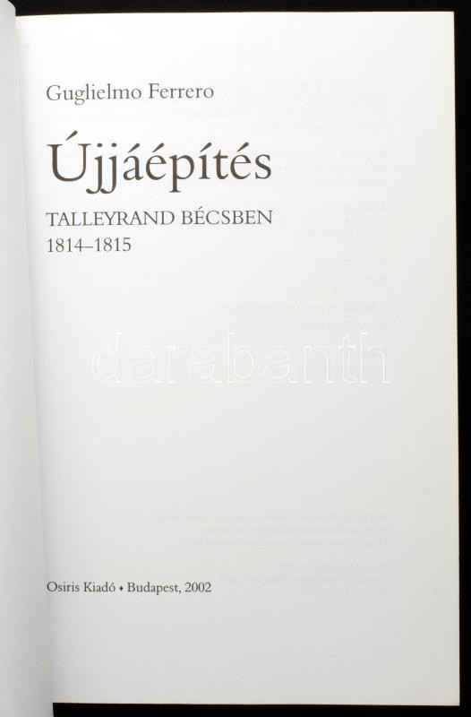 https://www.darabanth.com/en/514-Auction-philately-postcards-numismatics-artwork-books-colletibles-jewelry/515.0/Books/Books-History~617/Guglielmo-Ferrero-Ujjaepites-Talleyrand-Becsben-1814-1815-Osiris-Kiado-2002-Kiadoi-papi~II3458559