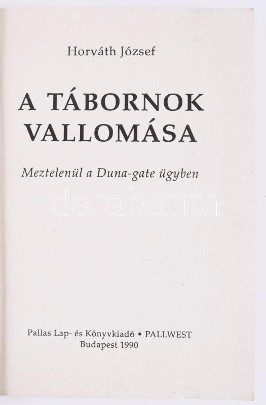 Horváth József: A tábornok vallomása. Meztelenül a Duna-gate ügyben. B... https://www.darabanth.com/en/514-Auction-philately-postcards-numismatics-artwork-books-colletibles-jewelry/515.0/Books/Books-History~617/Horvath-Jozsef-A-tabornok-vallomasa-Meztelenul-a-Duna-gate-ugyben-Bp-1990-Pallas-Lap-e~II3459636