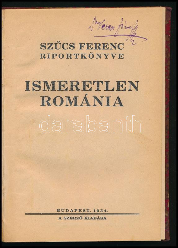 https://www.darabanth.com/en/514-Auction-philately-postcards-numismatics-artwork-books-colletibles-jewelry/515.0/Books/Books-History~617/Ismeretlen-Romania-Szucs-Ferenc-riportkonyve-Bp-1934-Szerzo-Ujrakotott-felvaszon-kot~II3450670