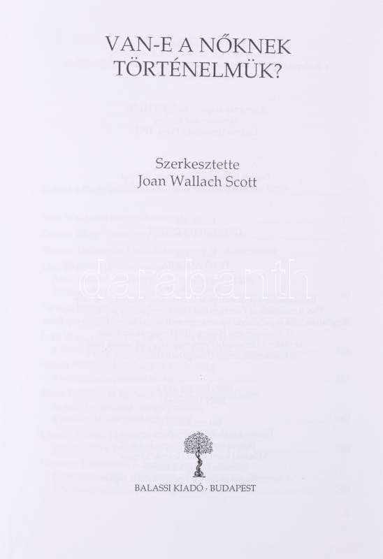 J.W. Scott (szerk.): Van-e a nőknek történelmük? Balassi Kiadó, 2001. Kiadói papírkötés