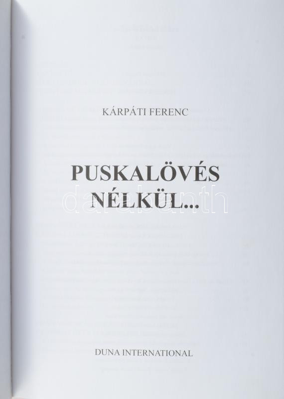 Kárpáti Ferenc: Puskalövés nélkül... Bp.,[2011], Duna International. G...