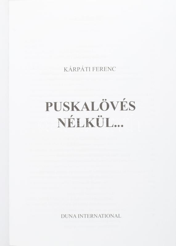 Kárpáti Ferenc: Puskalövés nélkül... Bp., én., Duna International. Gaz...