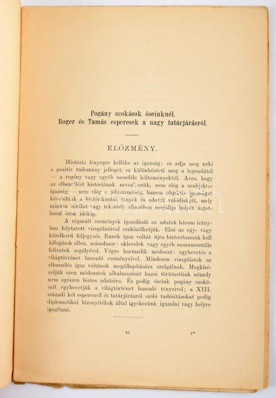 Mátyás Flórián: Pogány szokások őseinknél. Bp., 1897. MTA. 35p. Tűzve, első borító nélkül.