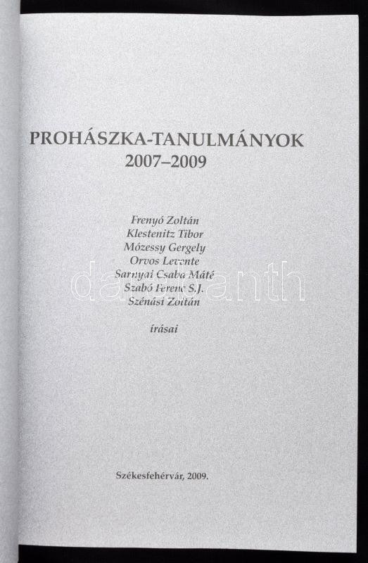 Description: Mózessy Gergely (szerk.): Prohászka-tanulmányok, 2007-2009. A Székesfehérvári Egyházmegye Prohészka-konferenciáinak előadásai. Székesfehérvár, 2009, Székesfehérvári Püspöki és Székeskáptalani Levéltár. Kiadói papírkötés, jó állapotban.