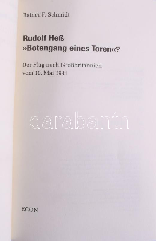 Rainer F. Schmidt: Rudolf Heß. "Botengang eines Toren"? Der ... https://www.darabanth.com/en/514-Auction-philately-postcards-numismatics-artwork-books-colletibles-jewelry/515.0/Books/Books-History~617/Rainer-F-Schmidt-Rudolf-HeC39F-Botengang-eines-Toren-Der-Flug-nach-GroC39Fbritannien-vom-10-Mai-1~II3477883