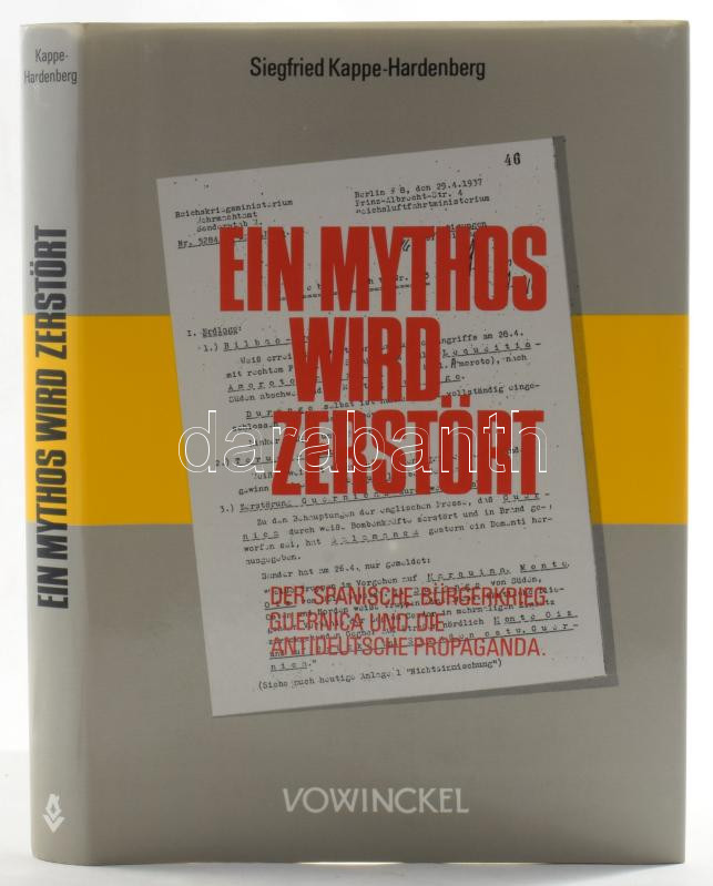 Description: Siegfried Kappe-Hardenberg: Ein Mythos wird zerstört. Der Spanische Bürgerkrieg, Guernica und die antideutsche Propaganda. Berg, 1987, Kurt Vowinckel. Német nyelven. Kiadói egészvászon-kötés, kiadói papír védőborítóban.