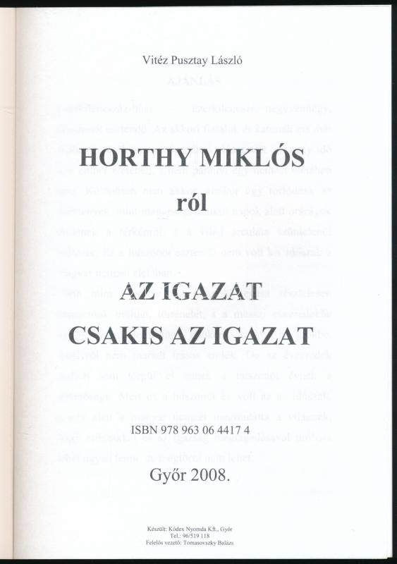 https://www.darabanth.com/en/514-Auction-philately-postcards-numismatics-artwork-books-colletibles-jewelry/515.0/Books/Books-History~617/Vitez-Pusztay-Laszlo-Horthy-Miklosrol-Az-igazat-csakis-az-igazat-Gyor-2008-Kiadoi-papi~II3476144
