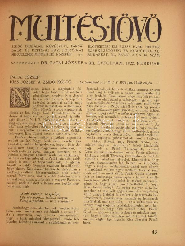 1922 Mult és Jövő. Zsidó irodalmi, művészeti, társadalmi és kritikai f... https://www.darabanth.com/en/514-Auction-philately-postcards-numismatics-artwork-books-colletibles-jewelry/515.0/Books/Books-Judaica~627/1922-Mult-es-Jovo-Zsido-irodalmi-muveszeti-tarsadalmi-es-kritikai-folyoirat-Szerk-Pat~II3483918