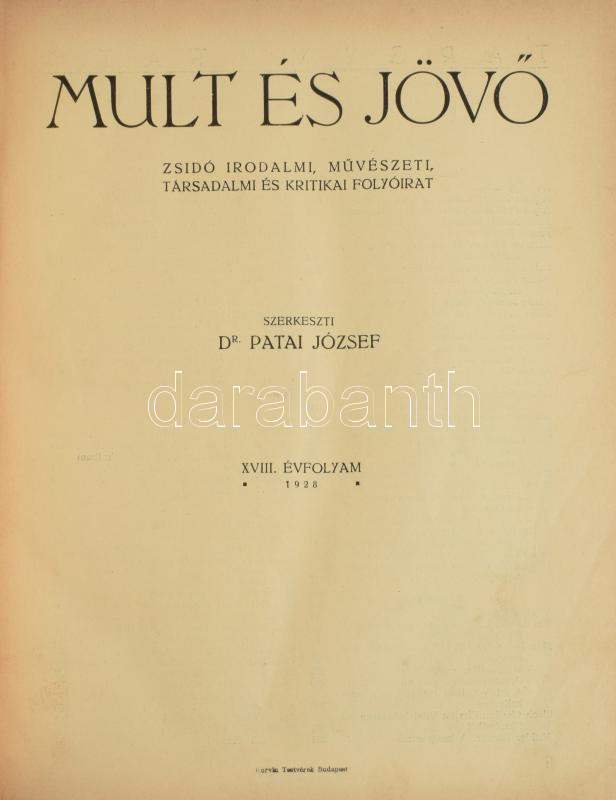 1928 Mult és Jövő. Zsidó irodalmi, művészeti, társadalmi és kritikai f... https://www.darabanth.com/en/514-Auction-philately-postcards-numismatics-artwork-books-colletibles-jewelry/515.0/Books/Books-Judaica~627/1928-Mult-es-Jovo-Zsido-irodalmi-muveszeti-tarsadalmi-es-kritikai-folyoirat-Szerk-Pat~II3483891