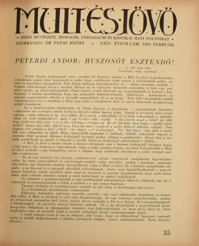 1934 Mult és Jövő. Zsidó irodalmi, művészeti, társadalmi és kritikai f...