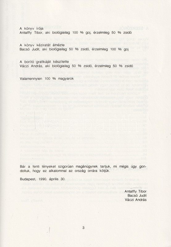 (Budapest), 1990. A szerző magánkiadása (Diafilmgyártó Vállalat). 113 + [1] p. Egyetlen kiadás.