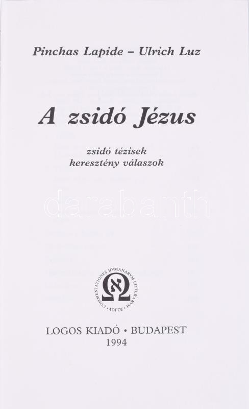 https://www.darabanth.com/en/514-Auction-philately-postcards-numismatics-artwork-books-colletibles-jewelry/515.0/Books/Books-Judaica~627/Pinchas-Lapide-Ulrich-Luz-A-zsido-Jezus-Zsido-tezisek-kereszteny-valaszok-Historica-Juda~II3459622