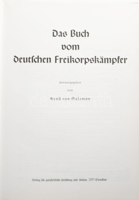 Ernst von Salomon: Das Buch vom deutschen Freikorpskämpfer. Struckum, ... https://www.darabanth.com/en/514-Auction-philately-postcards-numismatics-artwork-books-colletibles-jewelry/515.0/Books/Books-Military~618/Ernst-von-Salomon-Das-Buch-vom-deutschen-Freikorpskampfer-Struckum-1988-Verlag-fur-ganzheitlic~II3477787