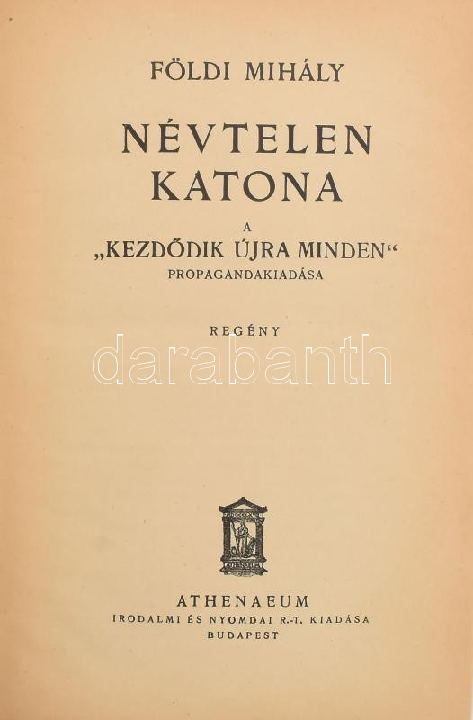 Földi Mihály: Névtelen katona. Bp.,- é.n. Athenaeum. 464p. Kiadói félvászon kötésben