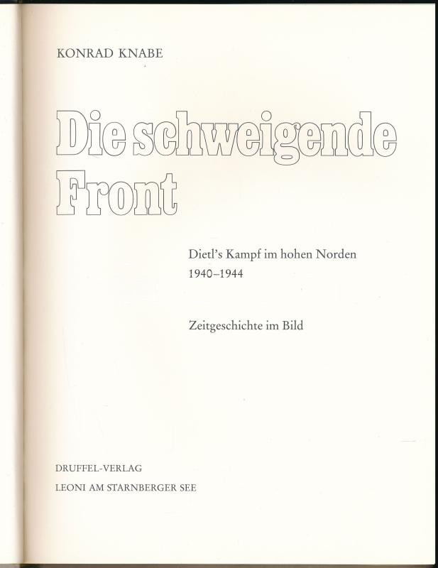 Konrad Knabe: Die schweigende Front. Dietl's Kampf im hohen Norde... https://www.darabanth.com/en/514-Auction-philately-postcards-numismatics-artwork-books-colletibles-jewelry/515.0/Books/Books-Military~618/Konrad-Knabe-Die-schweigende-Front-Dietls-Kampf-im-hohen-Norden-1940-1944-Zeitgeschichte-im-Bild~II3476933