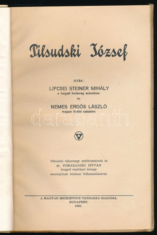 https://www.darabanth.com/en/514-Auction-philately-postcards-numismatics-artwork-books-colletibles-jewelry/515.0/Books/Books-Military~618/Lipcsei-Steiner-Mihaly-es-Nemes-Erdos-Laszlo-Pilsudski-Jozsef-Bp-1935-Magyar-Mickiewicz-T~II3289224