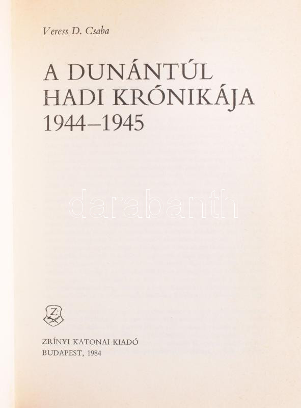 Veress D. Csaba: A Dunántúl hadi krónikája. 1944-1945. Bp., 1984, Zrín... https://www.darabanth.com/en/514-Auction-philately-postcards-numismatics-artwork-books-colletibles-jewelry/515.0/Books/Books-Military~618/Veress-D-Csaba-A-Dunantul-hadi-kronikaja-1944-1945-Bp-1984-Zrinyi-Terkepekkel-es-fek~II3481267