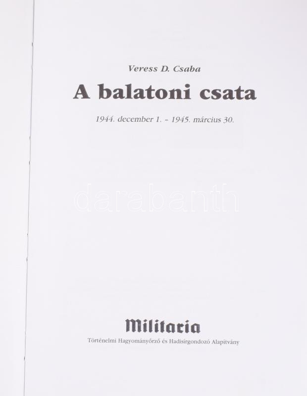 Veress D. Csaba: A balatoni csata. 1944. december 1. - 1945. március 3... https://www.darabanth.com/en/514-Auction-philately-postcards-numismatics-artwork-books-colletibles-jewelry/515.0/Books/Books-Military~618/Veress-D-Csaba-A-balatoni-csata-1944-december-1-1945-marcius-30-Bp-2000-Militaria-367plus~II3481108